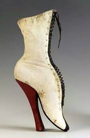 Lady Gaga feast your eyes on these! Exhibition boot, from around 1851. Made from white kid leather, black patent leather and scarlet Morocco lace boot. Wow!